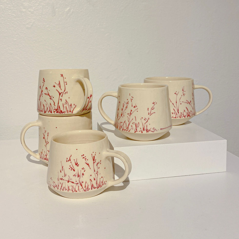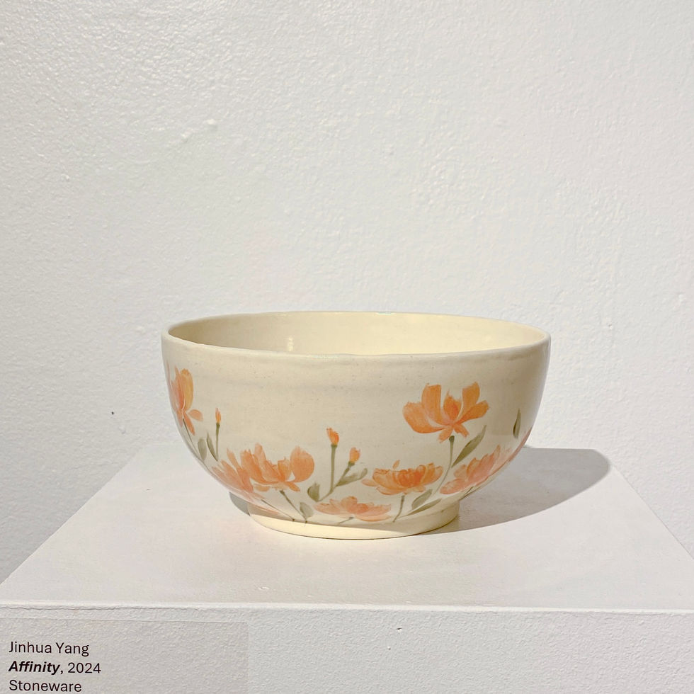 This body of work reflects and explores my learning experience and the recognition of my relationships. Each of my vessels is thrown and decorated with floral imagery with hand painting and drawing. The imagery is connected to certain flowers and their symbolism, for example, the chamomile represents peace and calmness, and the peony represents love and passion. In my childhood memories, exploring and observing nature in my parents' garden has always brought me a sense of tranquility. My work is inspired by these memories and my connection with nature.